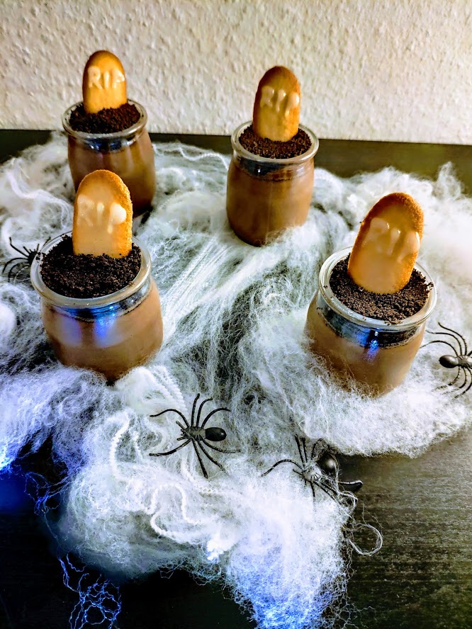A noite mais assustadora do ano trouxe-nos uma sobremesa fresca e deliciosa, muito semelhante à do ano passado. Desta vez experimentei uma receita que encontrei no Arco Íris na cozinha. As quantidades rendem 4 doses.